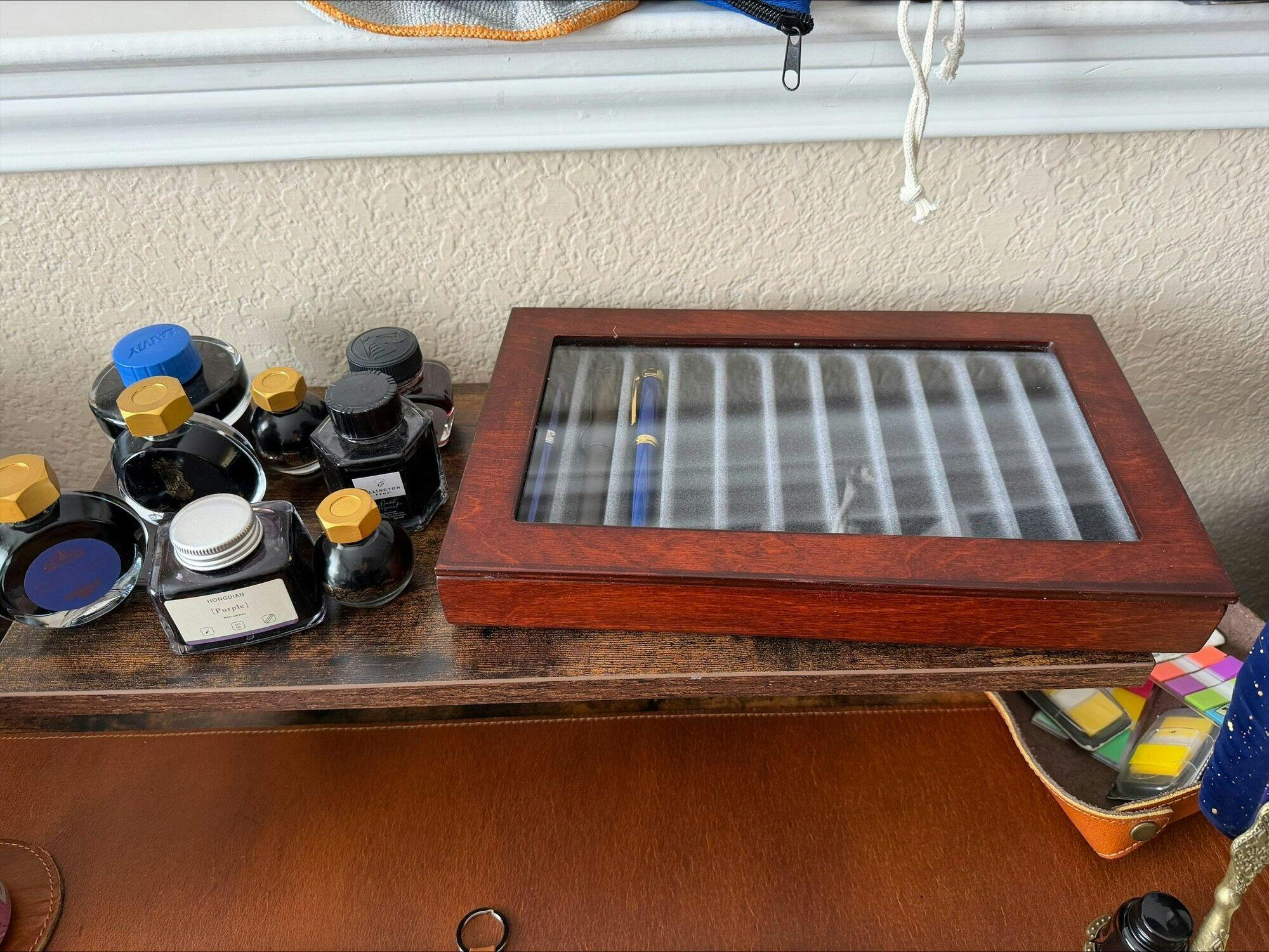 This stunning wooden pen and ink storage box was designed as a safer way to store precious pens for all the fellow pen addicts out there.