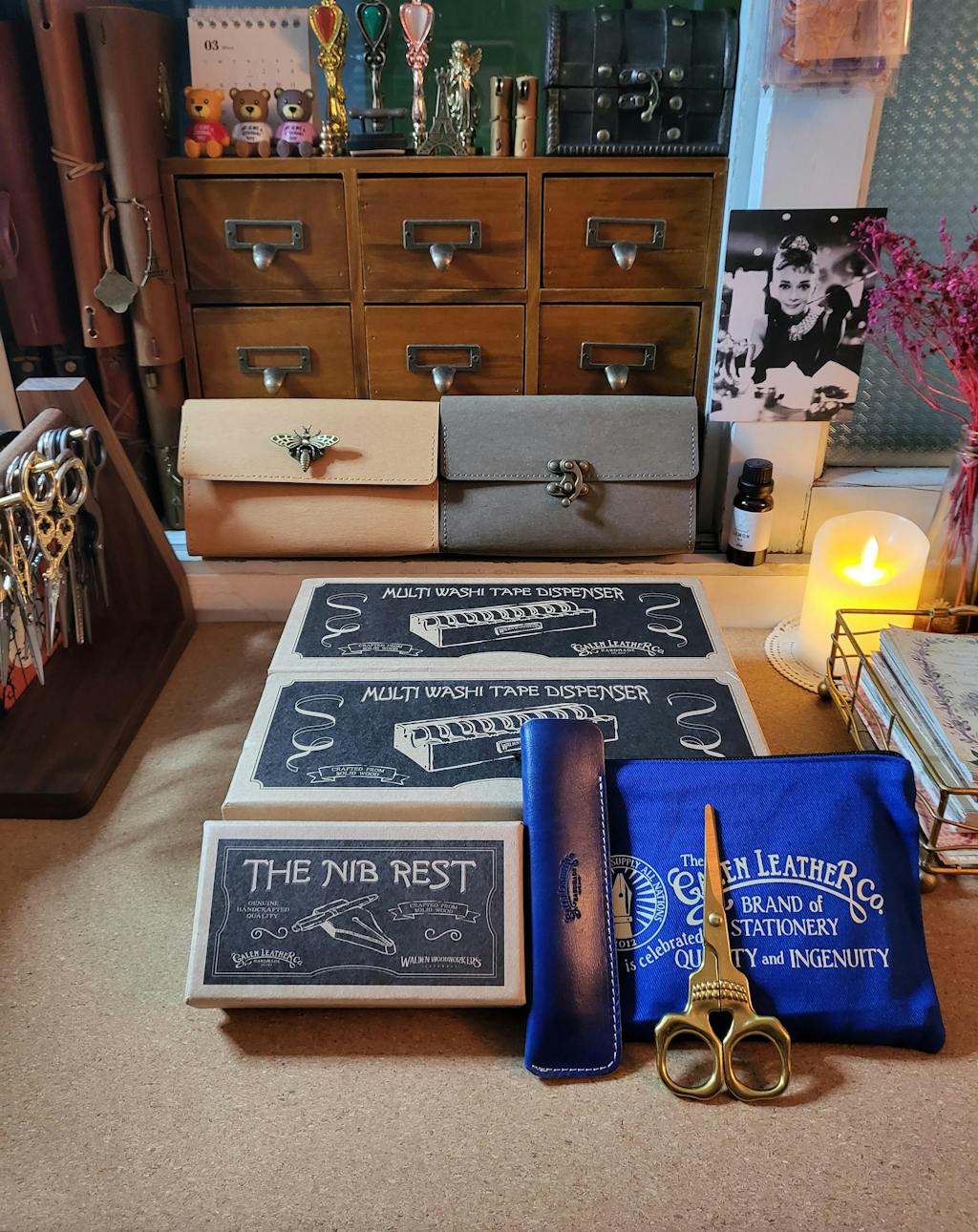 For all you Washi Tape fanatics out there, this gorgeous handmade wooden washi tape dispenser is a beautiful way to display your beloved washi tape collection! It's easy to use with a single internal rod supporting your individual washi tape rolls. The tape holder is cleverly designed so you can stack multiple dispensers on top of each other. It keeps your favourite Washi tapes on your desk, adding atmosphere to your handcrafts area and looks extra stylish sitting next to a leather desk mat on your worktable.