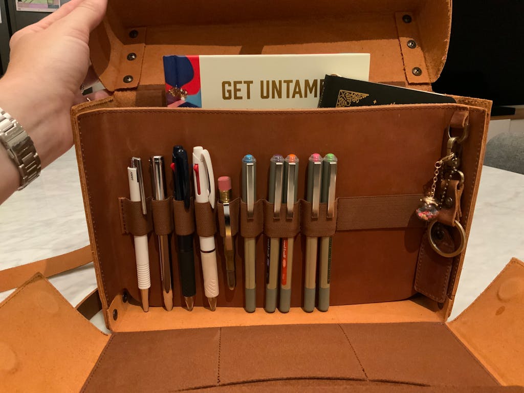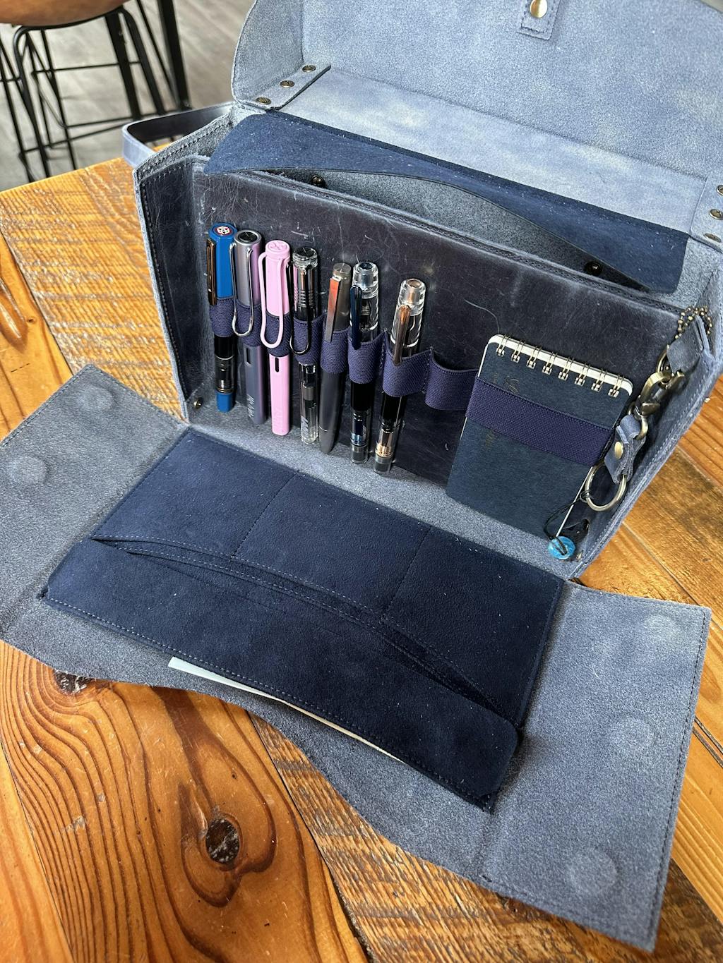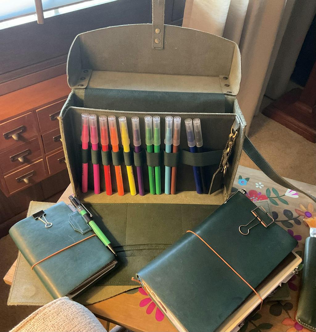 The Writer's Medic Bag will light up any writer's imagination. With compartments for leather notebooks, leather journals, fancy pens and accessories, you can easily take all your writing essentials with you wherever your work takes you. This is the perfect writer's gift or gift for fellow lovers and collectors of our Galen Leather handmade leather goods. Now you can keep all your favourite items together and take them on your next adventure! The gorgeous distressed forest green colour is a long time favourite from our leather collection so it was no wonder we had to include it in the Writer's Medic Bag.
