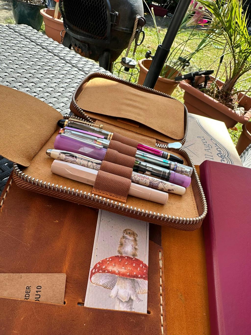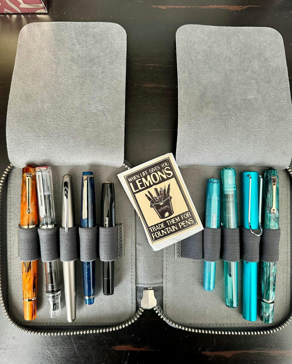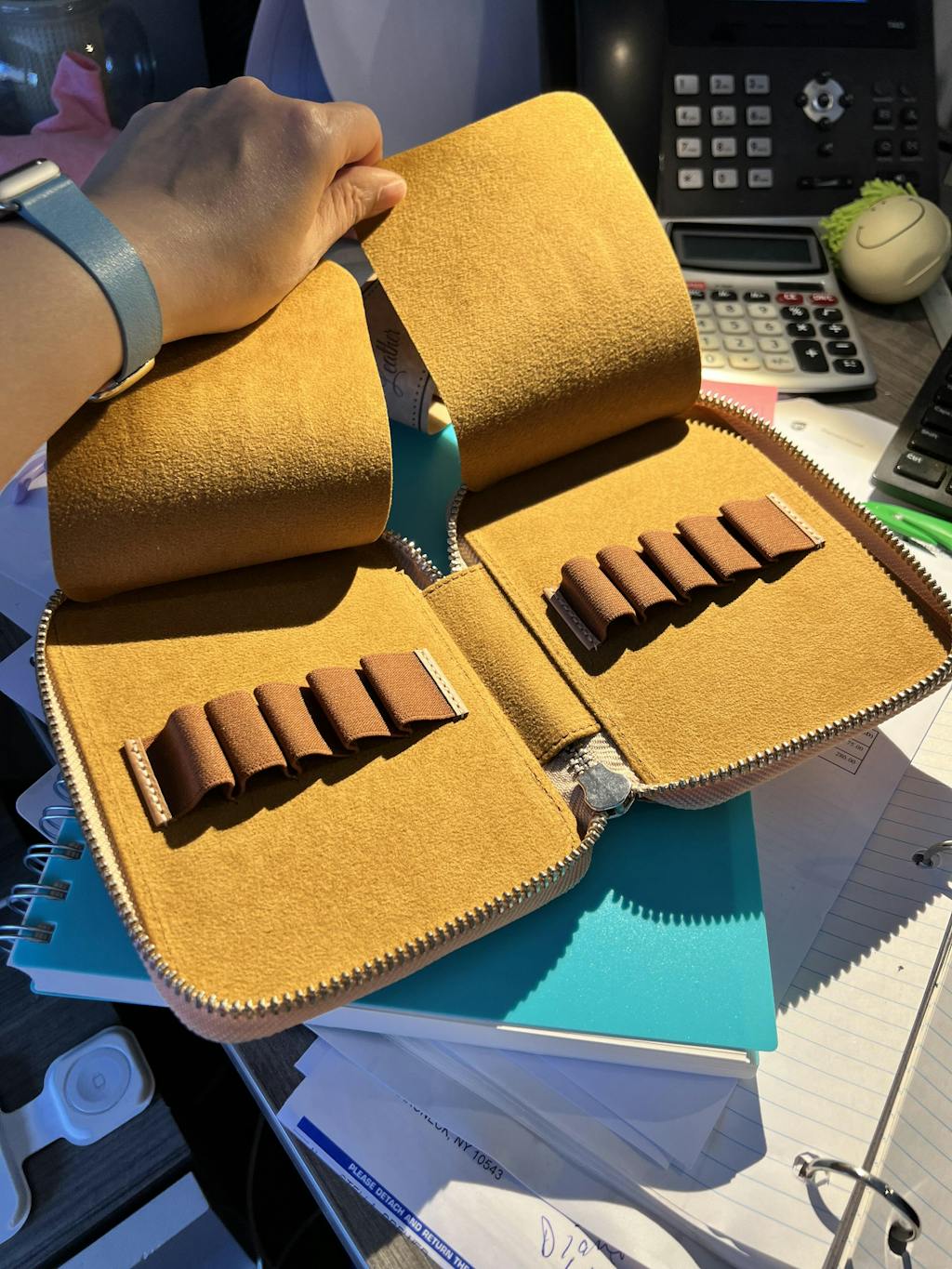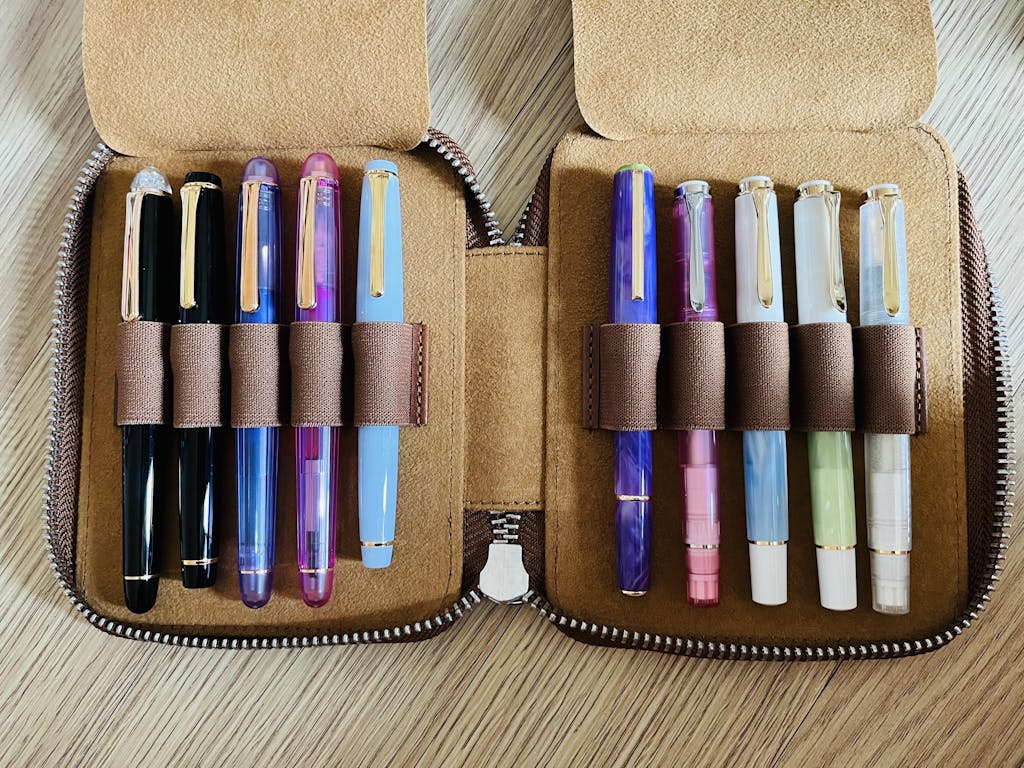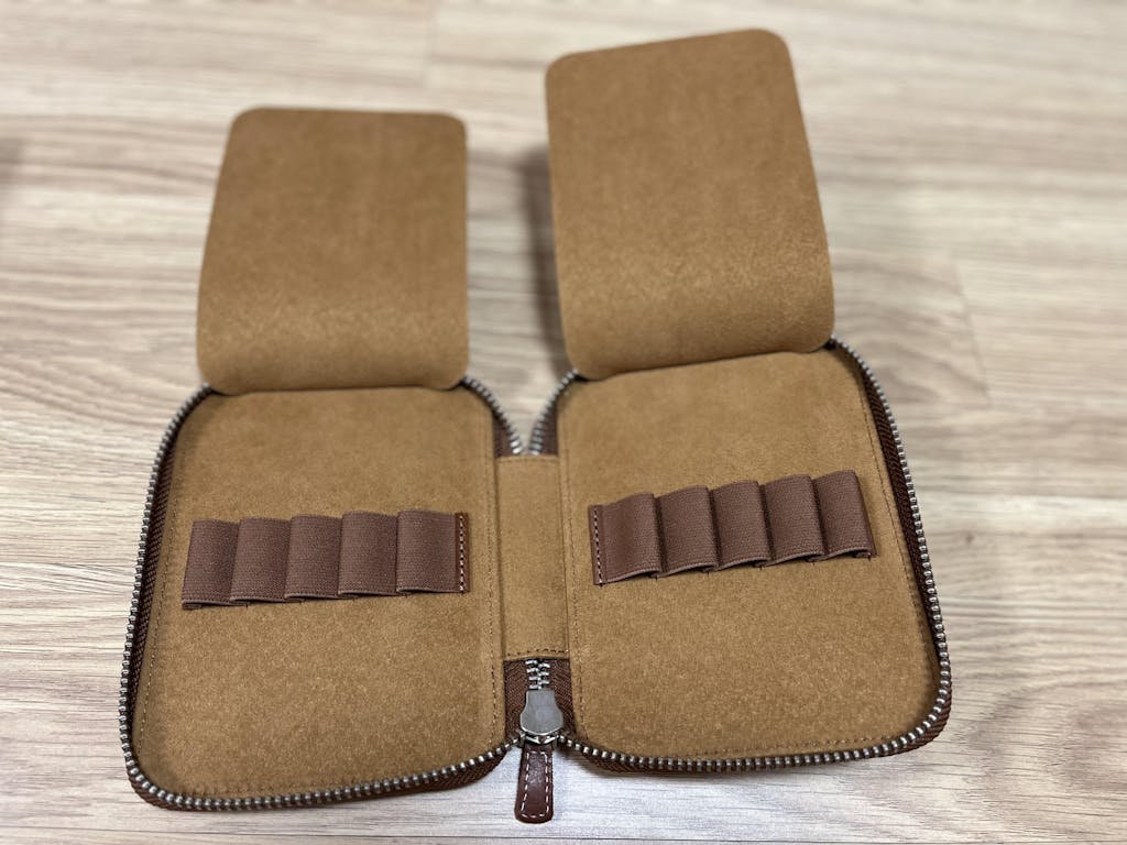 This Leather Zippered Pen Case has a velvet lined interior and holds up to 10 pens. When you want to carry your favorite pens, you want them protected in your bag, purse or pocket to avoid ink leaking everywhere or getting them scratched. This leather pen holder is great to protect your fountain pens and keep them safe.