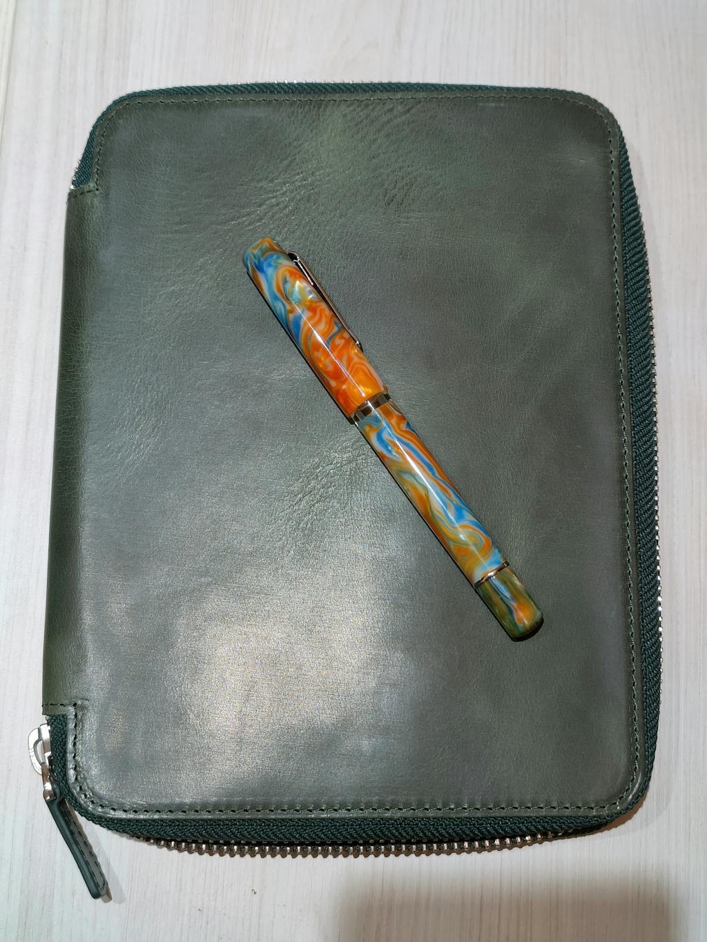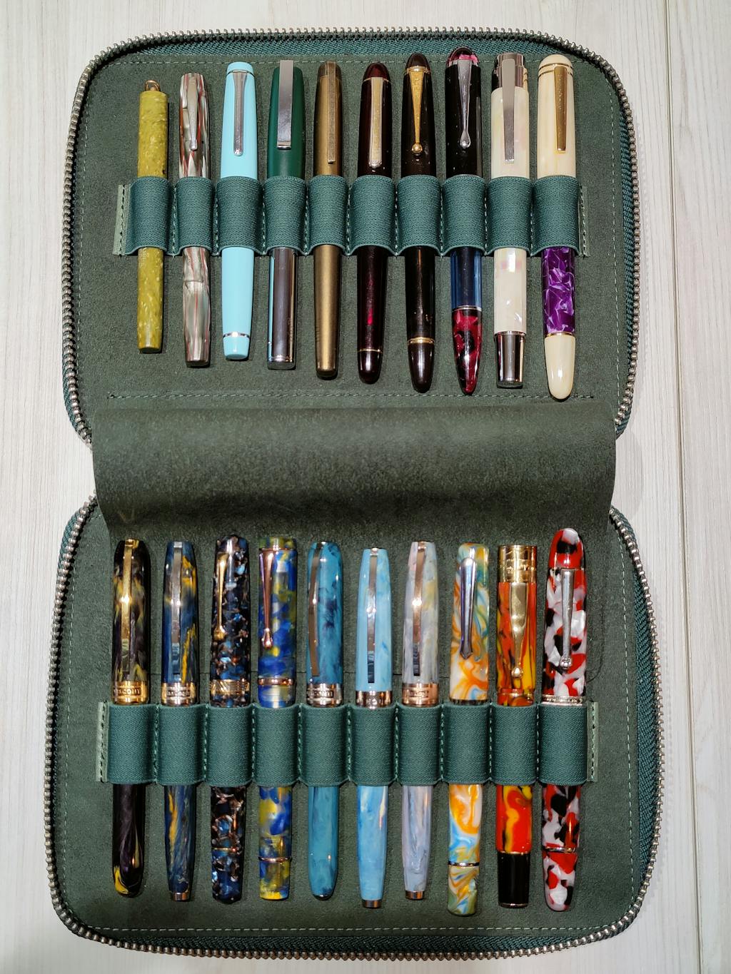 Leather Zippered 20 Slots Pen Case - Crazy Horse Forest Green