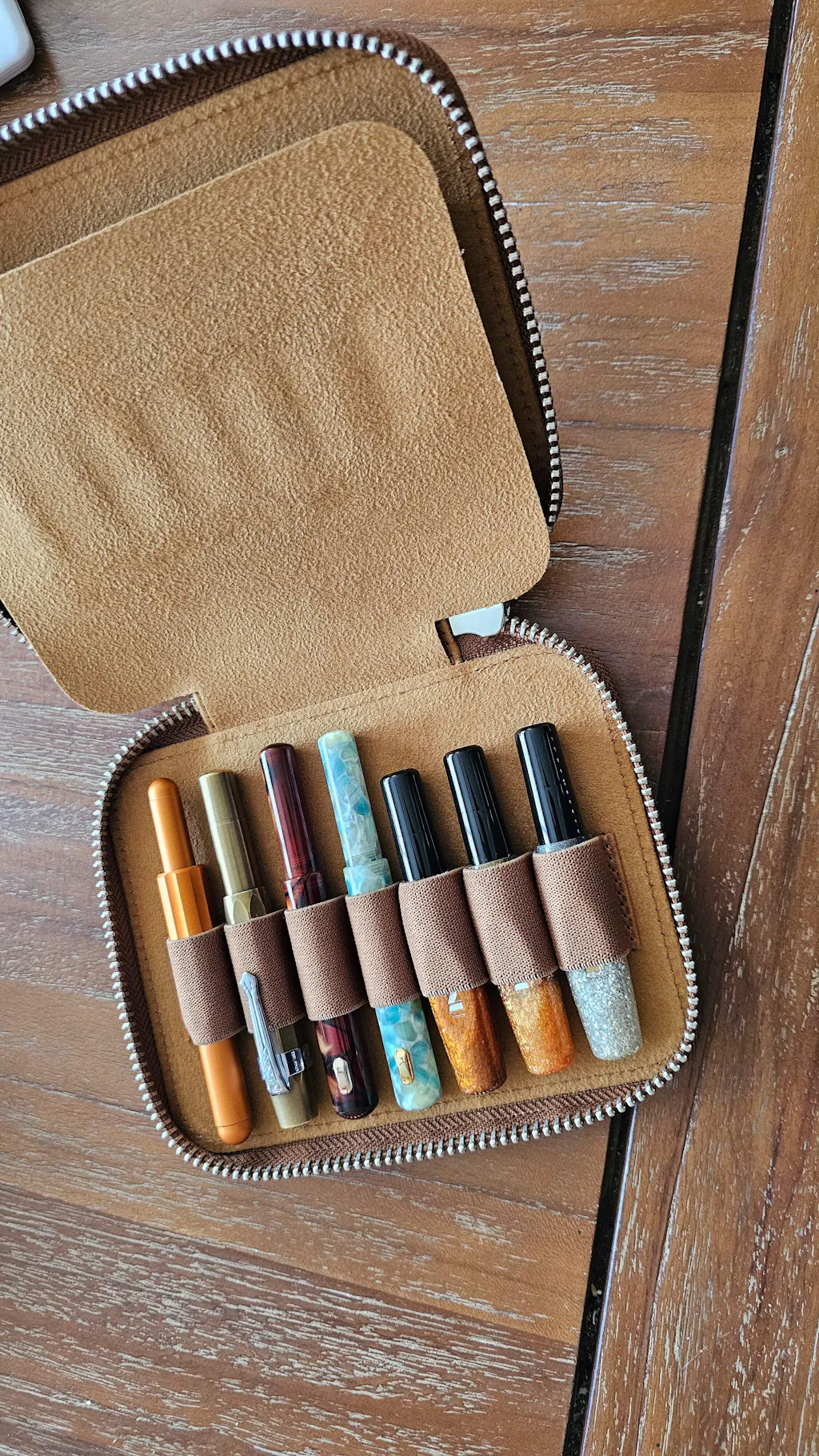 When you want to carry your favorite pens, but you want them protected in your bag, purse or pocket. This leather pen holder is great to protect your fountain pens and keep them safe.