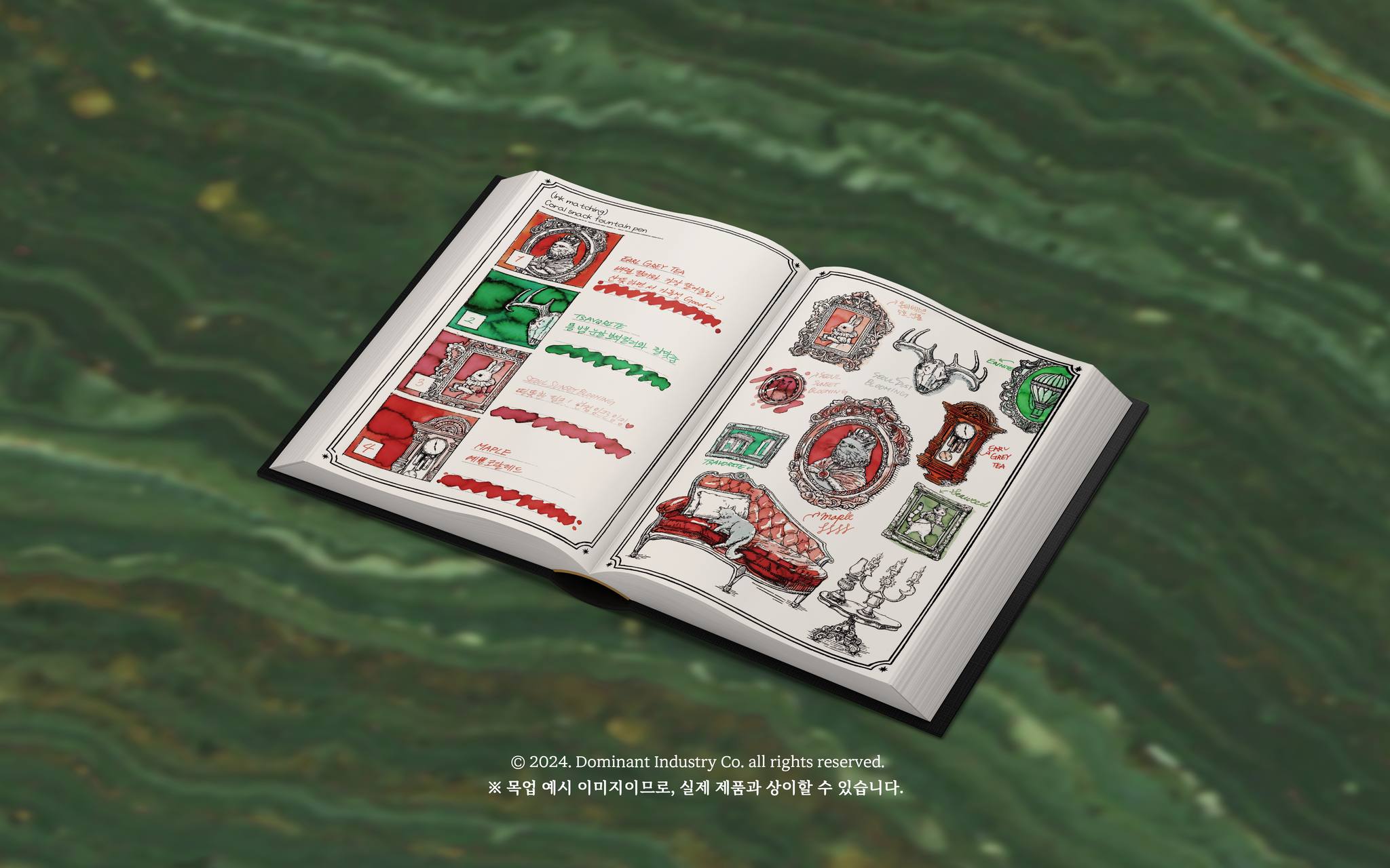 The "A Log of Elixir" collection takes inspiration from alchemy, blending vintage style with practical design. This second edition in Dominant Industry’s Ink Archiving series features a black faux leather hardcover and organized sections for swatches, descriptions, and personal notes. The acid-free pages ensure your ink samples and writing stay preserved over time. In collaboration with artist Sing Ink Swatch, the A Log of Elixir ink archiving book is is filled with detailed illustrations of magical elixirs and alchemical tools that create an engaging and immersive experience.
