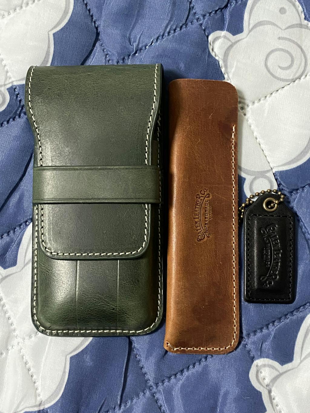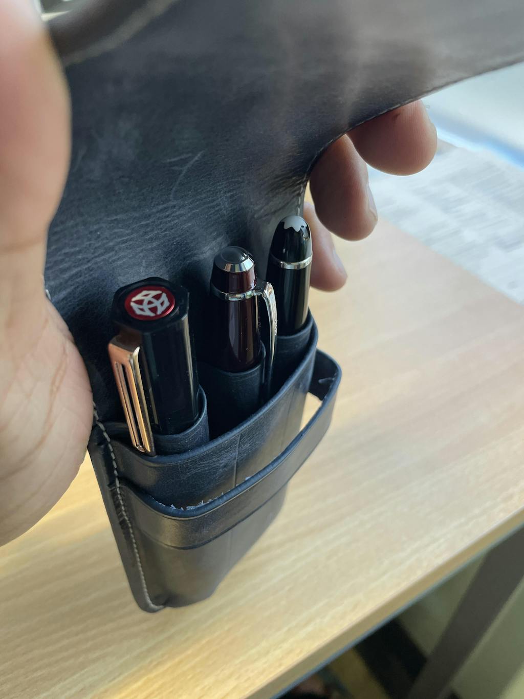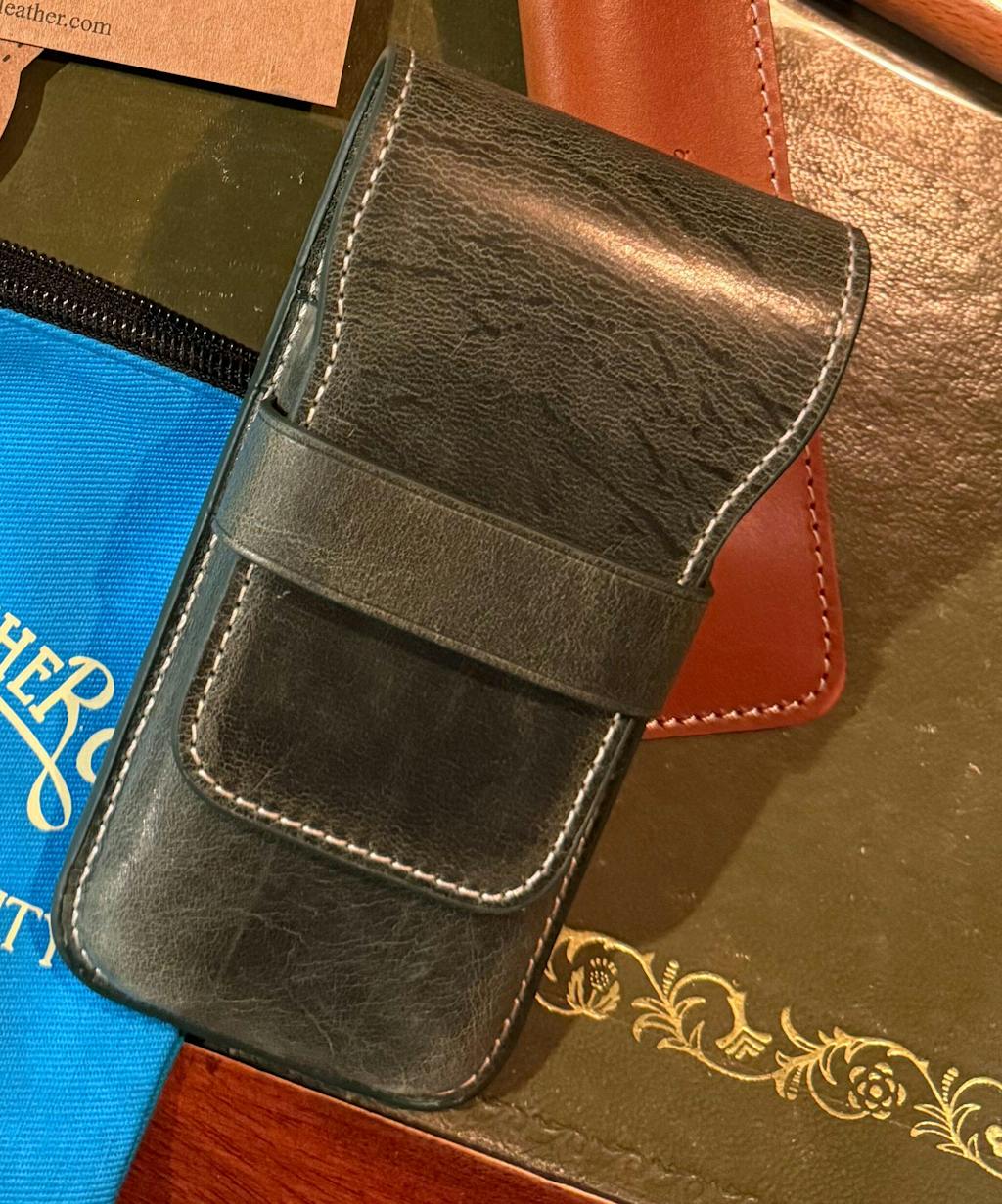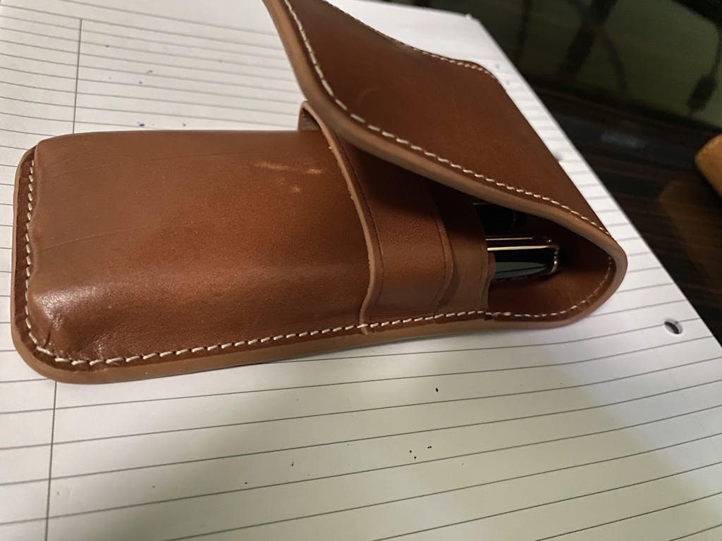 Our Two Pen Leather Flap Pen Case will keep your precious pens from getting scratched, ruined, or from leaking in your bag or jacket pocket. Suitable for most Fountain pens and other type of pens.