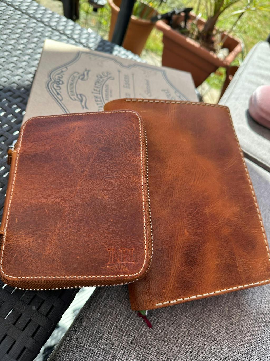 Handmade Leather Hobonichi A5 Planner and iPad Mini CoverColor/Finish: