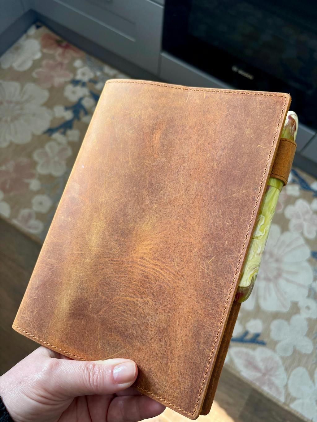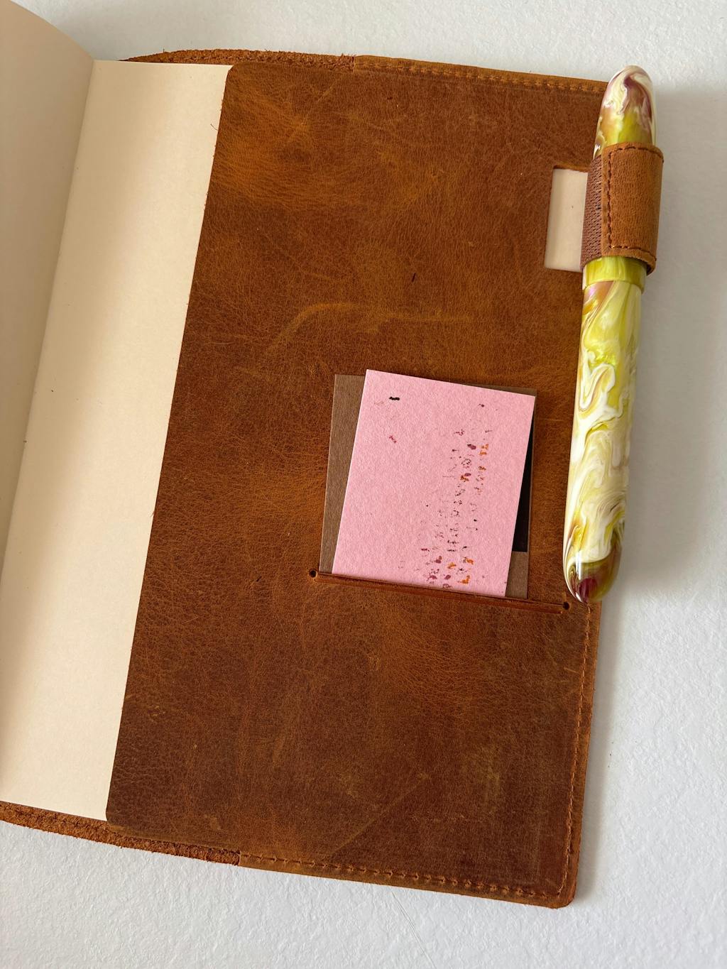 This leather cover fits Galen Everyday Books, Stalogy 365, Life A5, Apica CD A5, Logical Prime A5, Midori MD A5, Hobonichi Cousin A5, Kleid A5, Yamamoto A5, Nanami A5, Galen Leather Notebooks A5. And all soft-covered notebooks in A5 size.