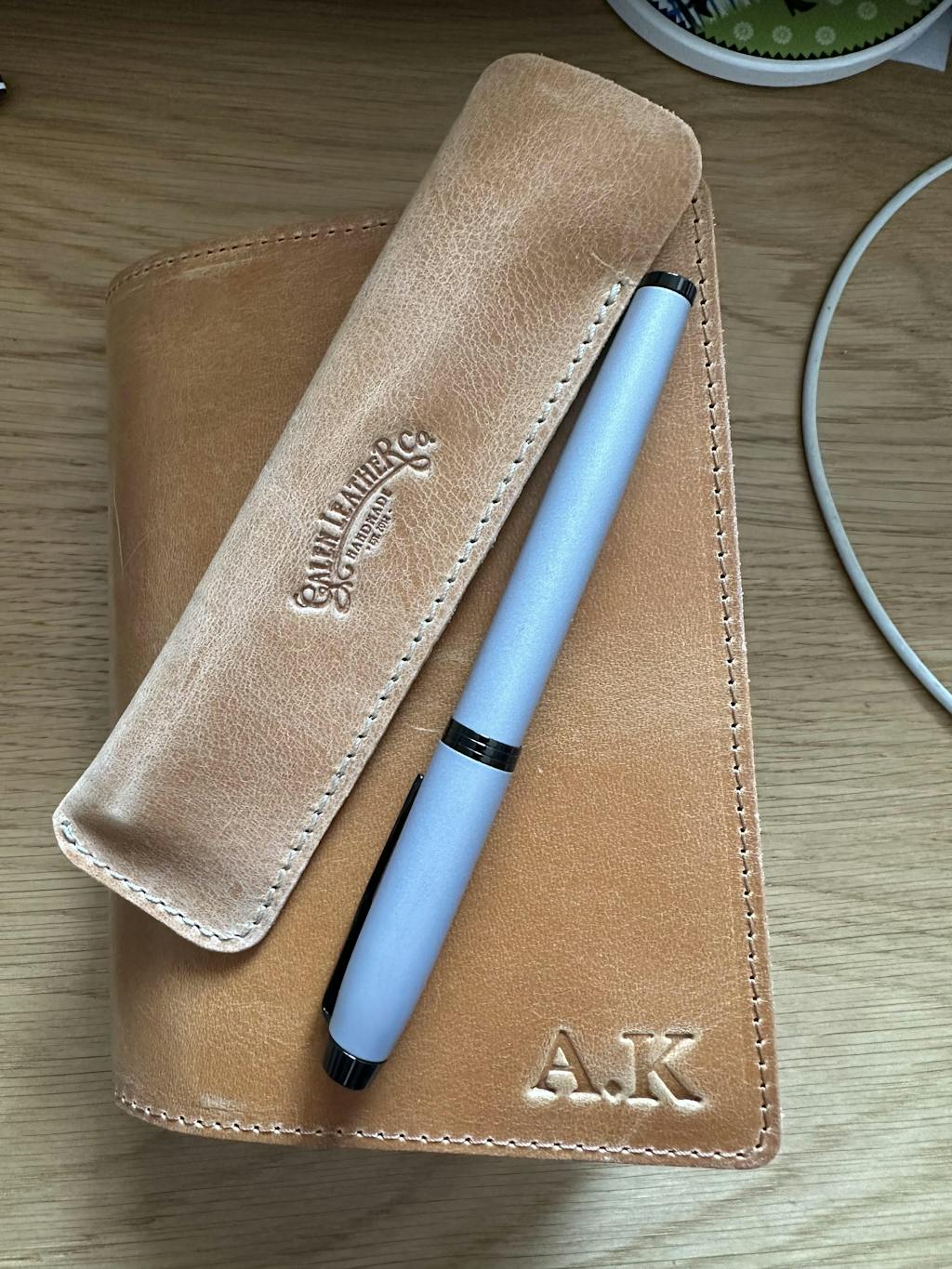 Save yourself the hassle of digging around your bag by keeping your writing essentials safe and secure in one place. This simple and compact Handmade Crazy Horse Brown Leather Slim A6 Notebook / Planner Cover is the perfect way to store your A6 notebook or planner. It features a sleek pocket sleeve on the inside for papers, stamps, cards and rulers. Plus, a smart slot on the side for your favorite pen, so you always have a pen at hand to jot down your ideas.