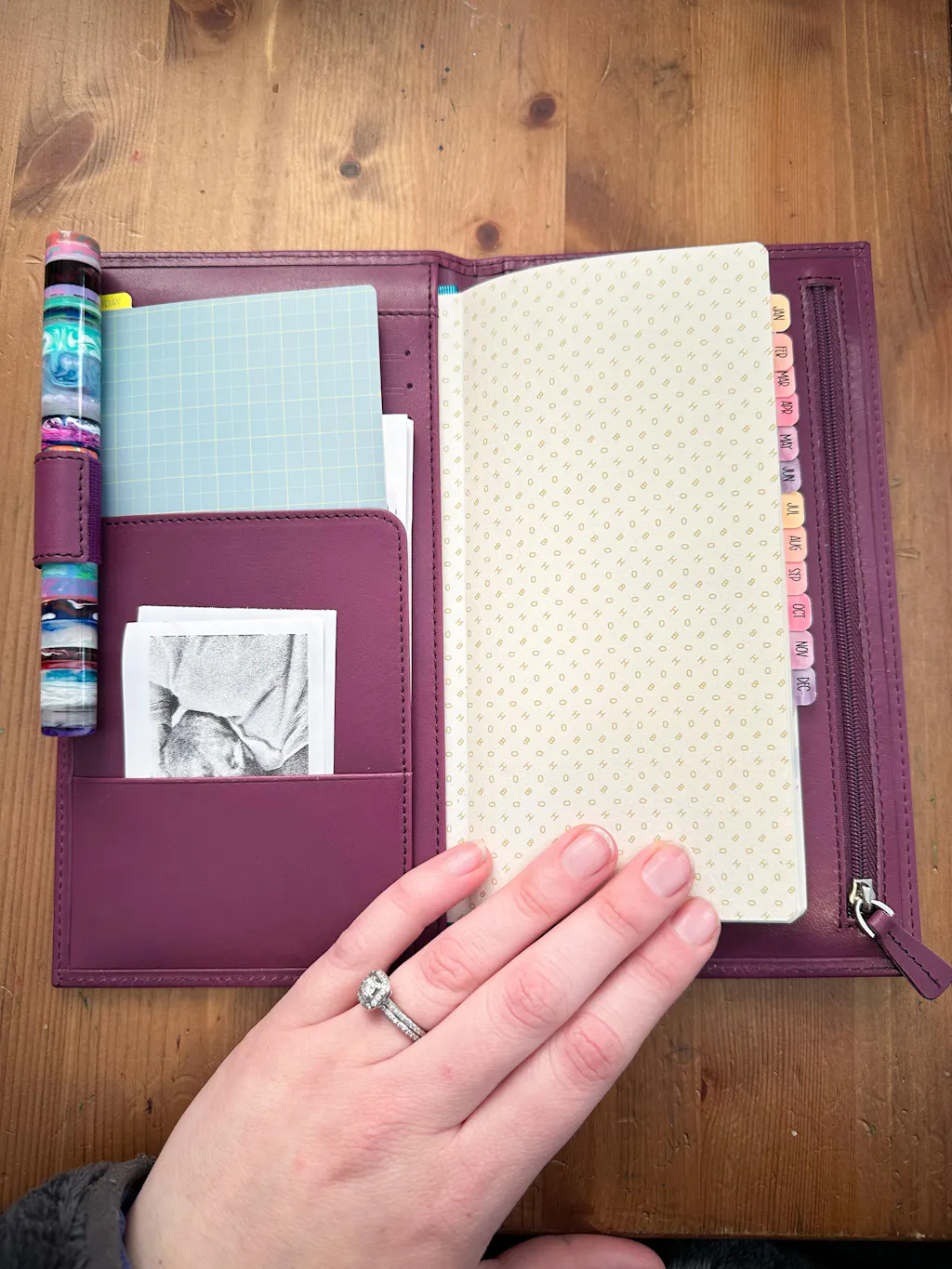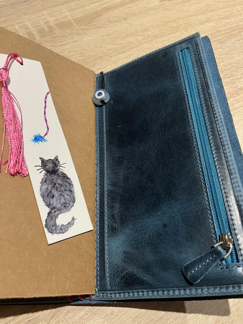 This leather long wallet can be seamlessly incorporated into your regular sized Traveler's Notebook or used as a stand-alone wallet.