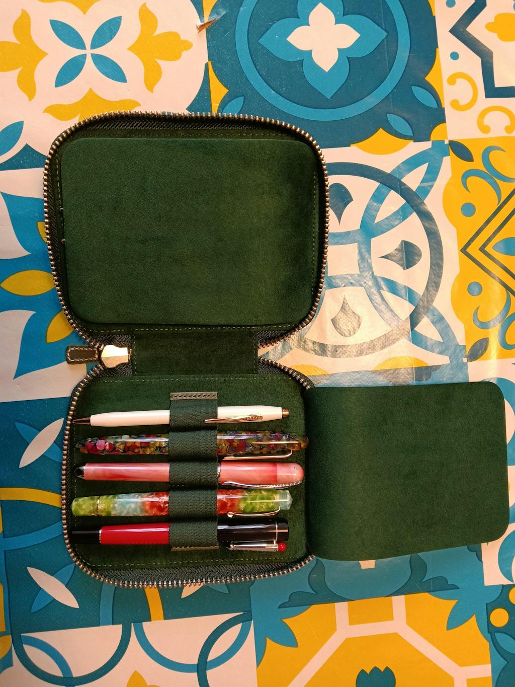 This Leather Zippered Pen Case has a velvet lined interior and holds up to 10 pens. When you want to carry your favorite pens, you want them protected in your bag, purse or pocket to avoid ink leaking everywhere or getting them scratched. This leather pen holder is great to protect your fountain pens and keep them safe.