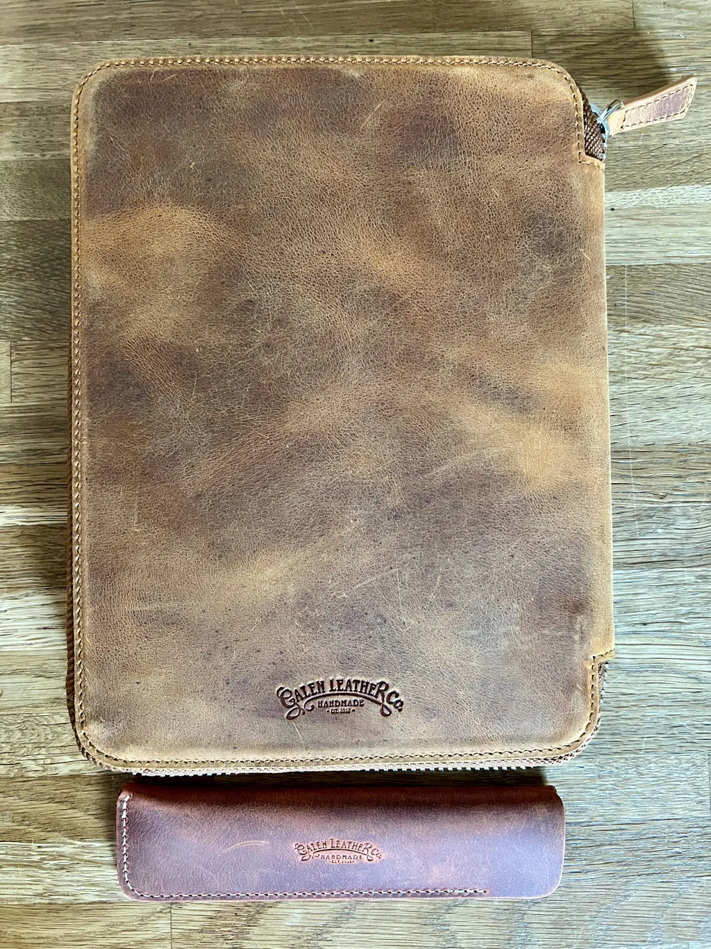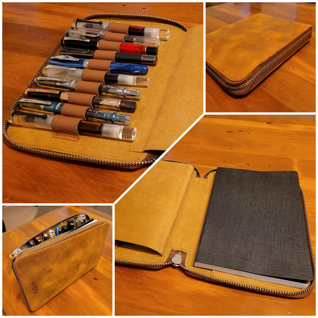 Handmade Leather Zippered 10 Slots Pen Case with A5 Notebook Holder