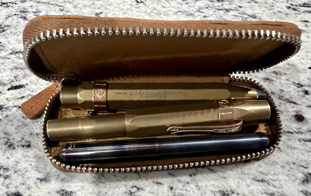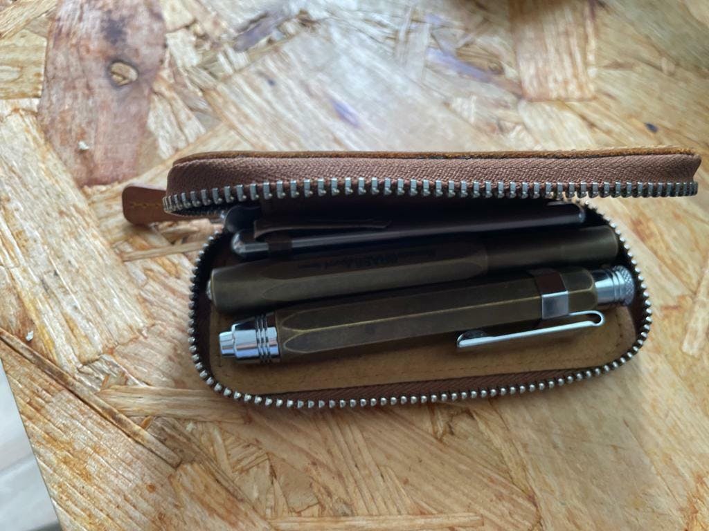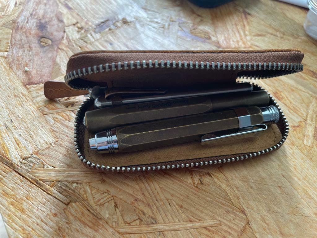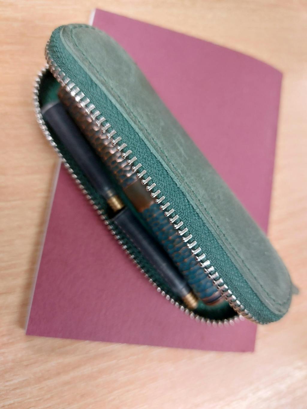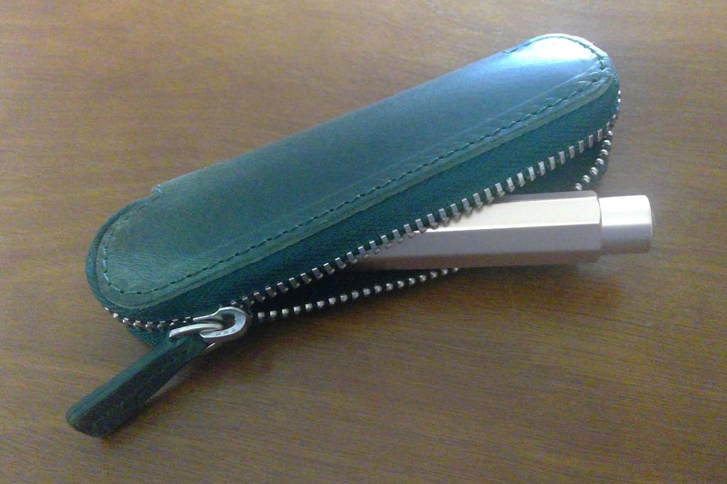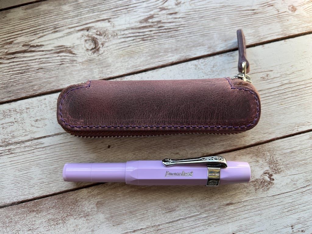 Our Purple Leather Zippered Single Pen Case was made especially for a Kaweco Pocket Pen or pens of similar size. It's perfect for carrying around your pocket-sized fountain pen (like Kaweco) to protect it from scratches or leaking in your pocket or bag.