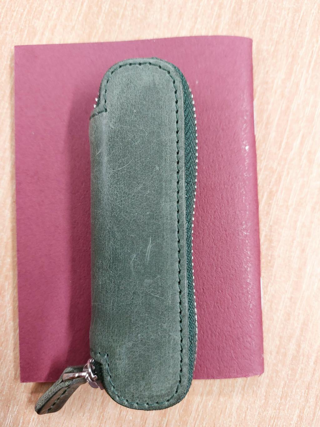 Leather Zippered Single Pen Case for Kaweco - Pocket Pen - Crazy Horse Forest Green