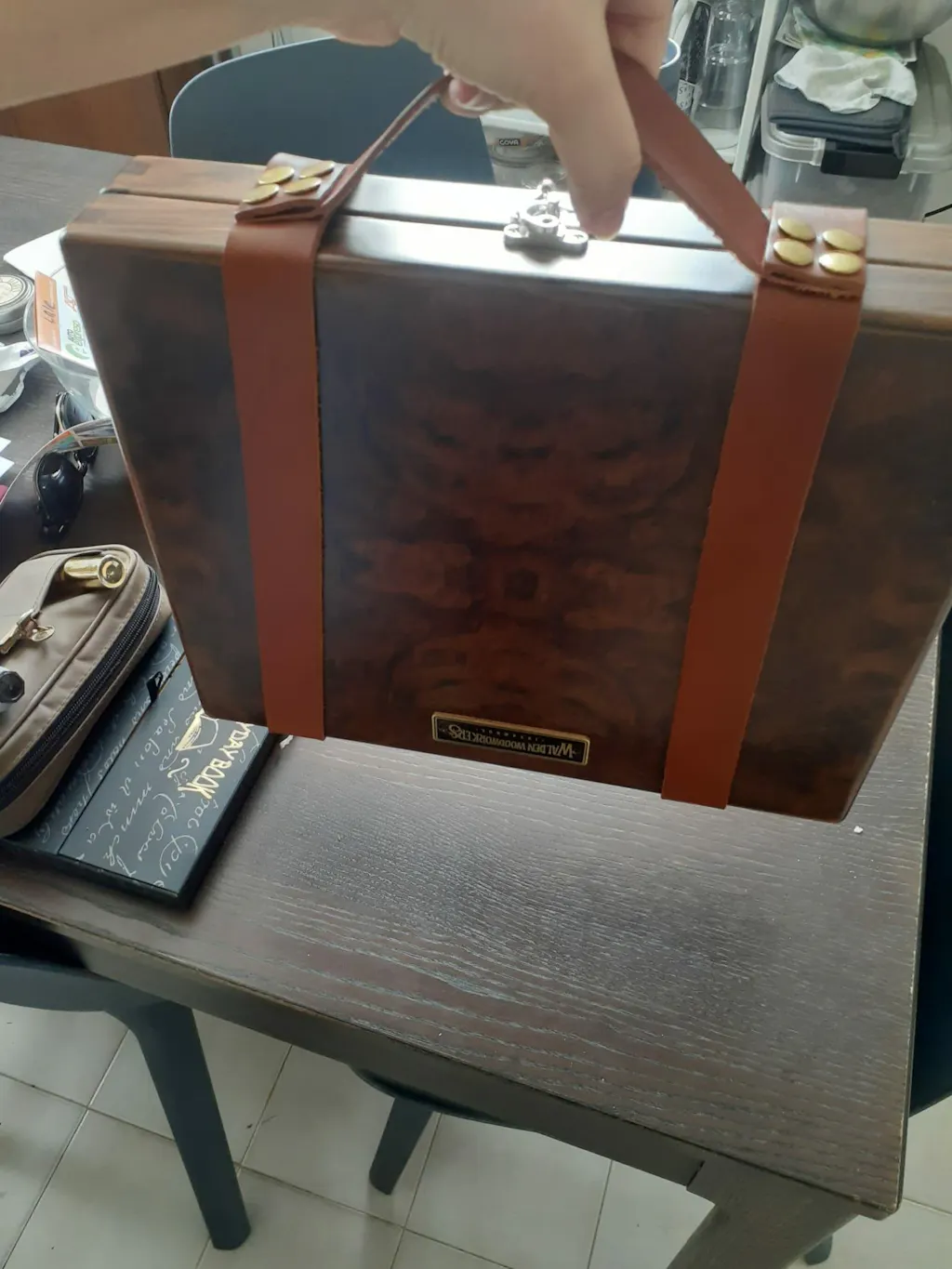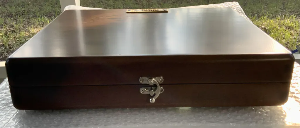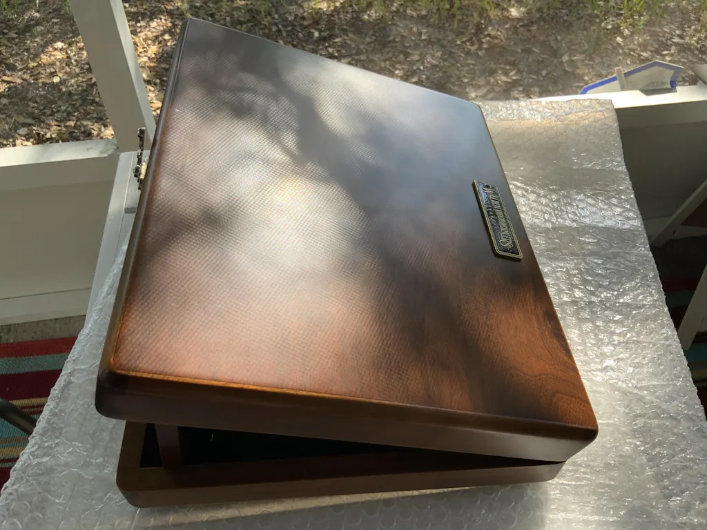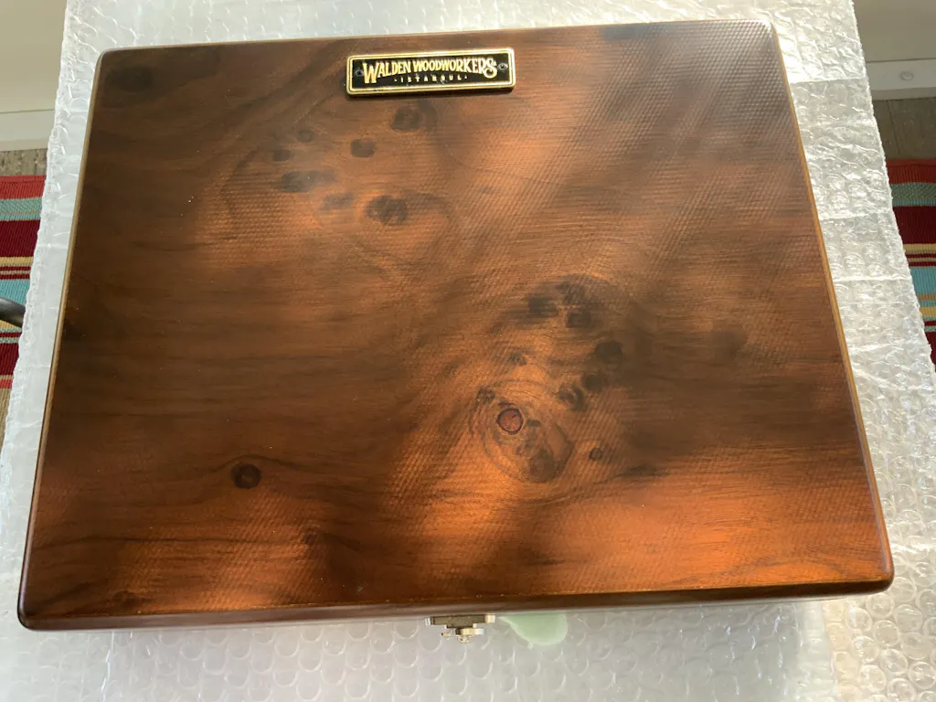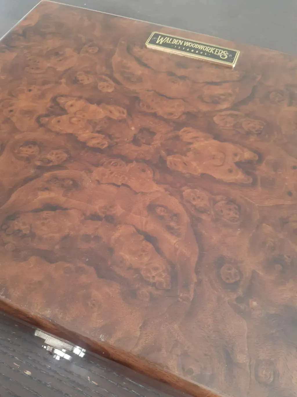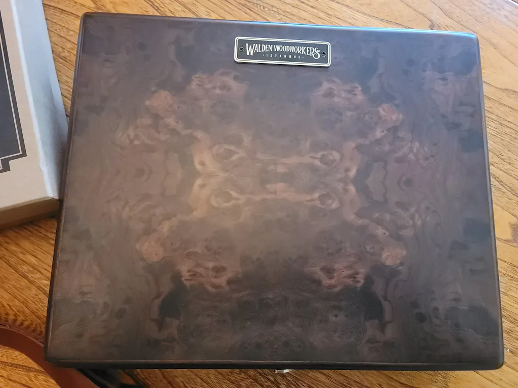 A special edition of the writing box, the top side is made of burl walnut wood.