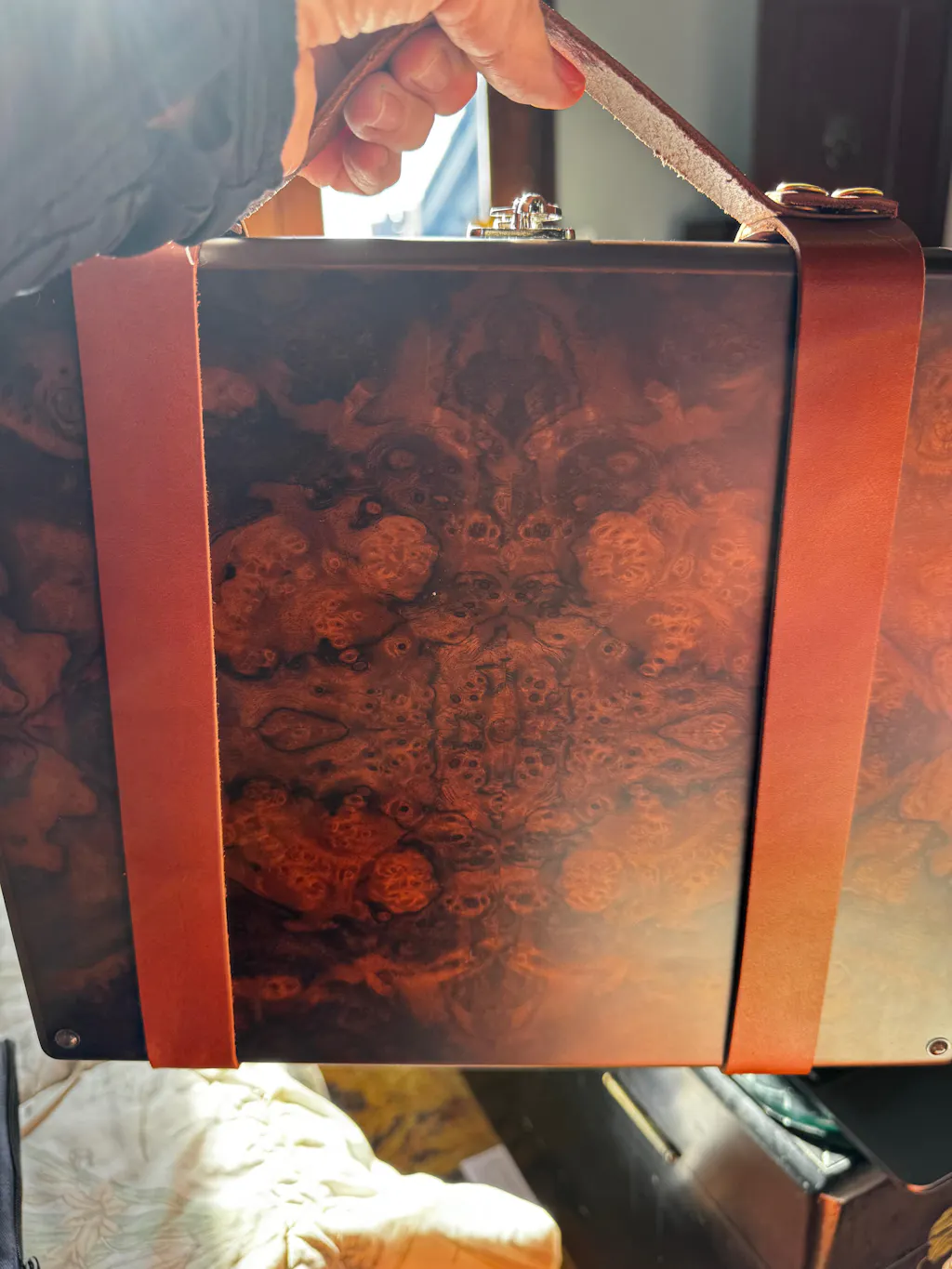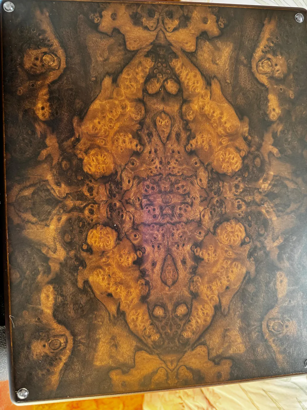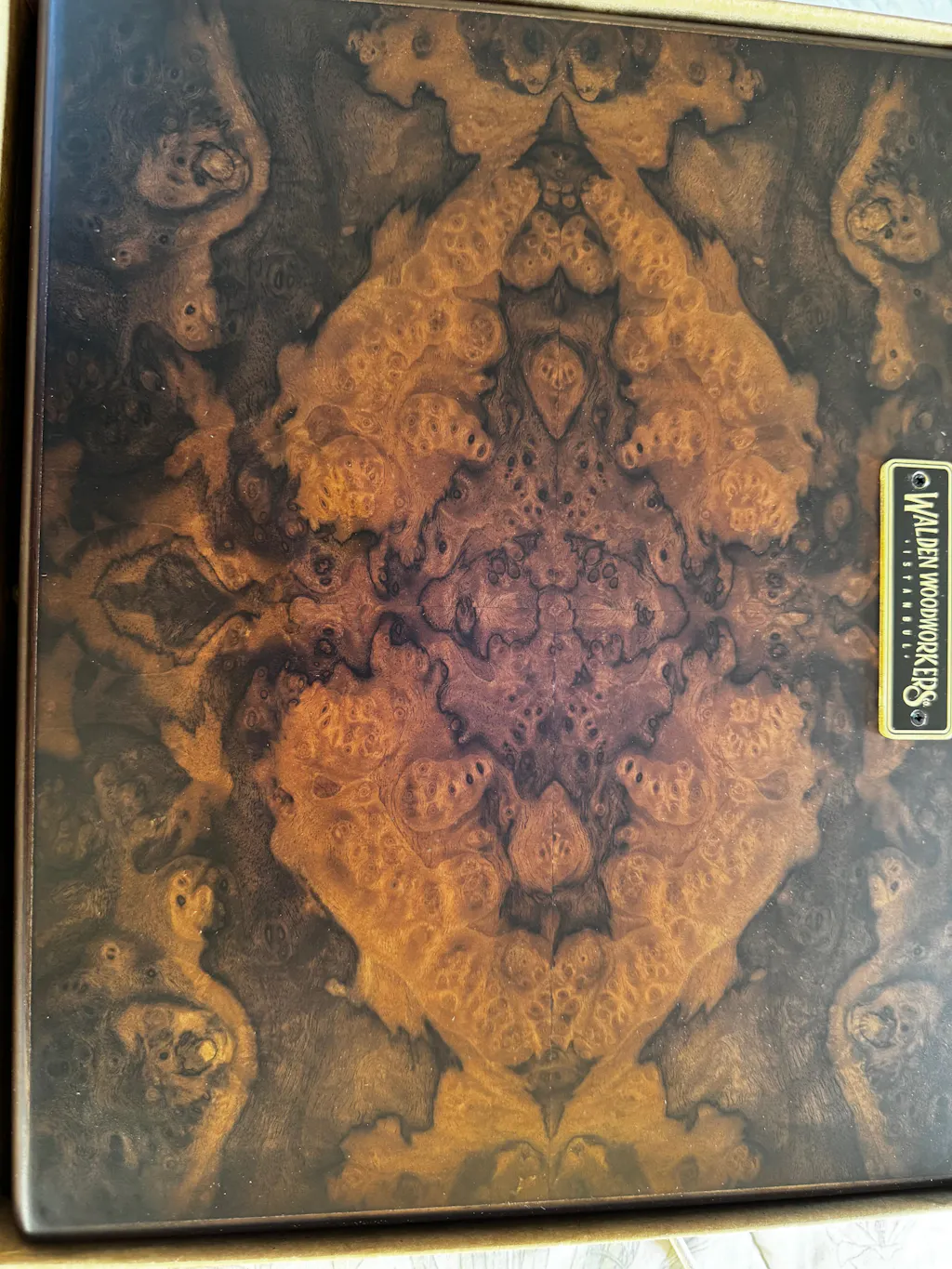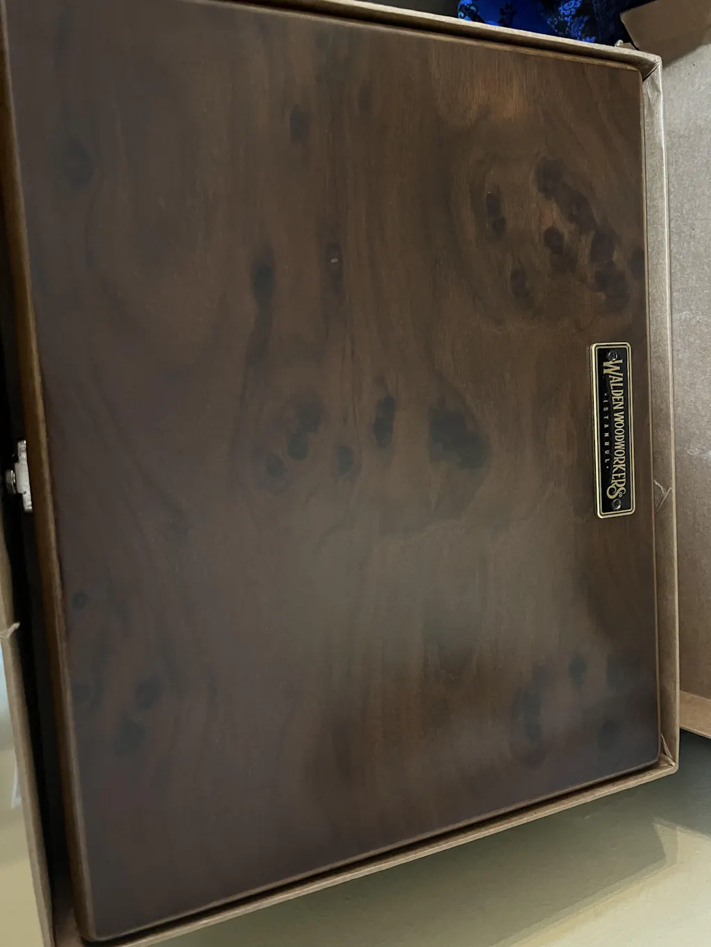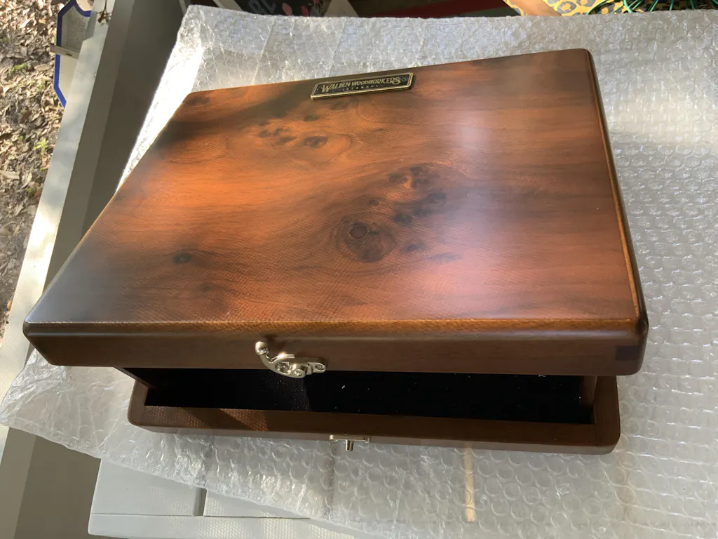 Please note: Burl walnut is a natural wood known for its unique knots and distinctive patterns, which add to its character and charm. Due to the nature of this material, your box may feature some natural variations or imperfections, making each piece truly one-of-a-kind.
