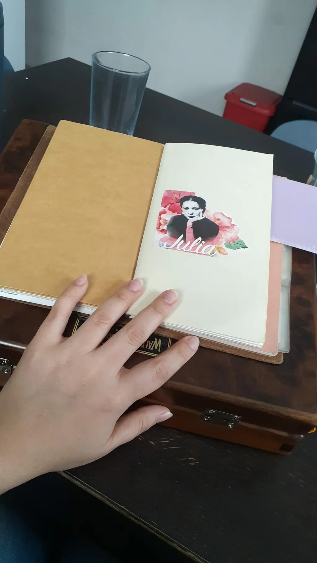 - Outside of the top cover fits a flat lay A5 notebook