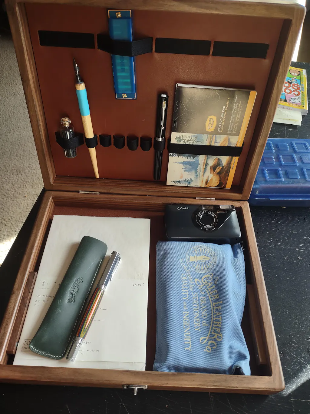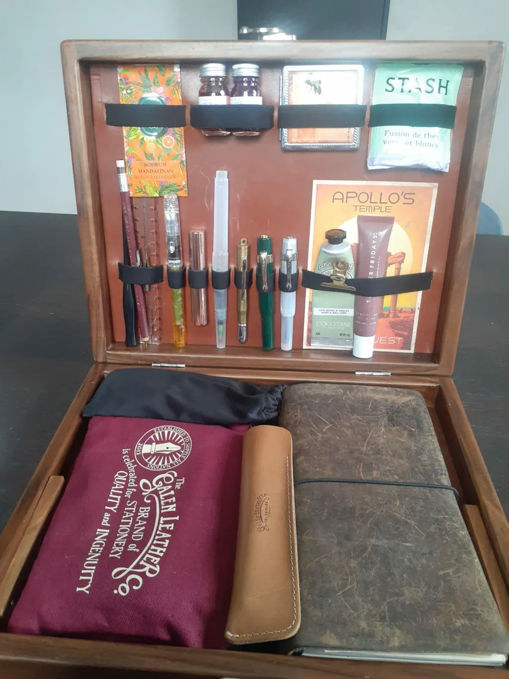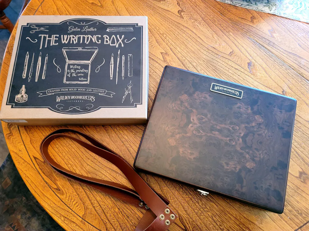 Centuries ago, writing boxes enabled people to transport their stationery and writing instruments from place to place. These boxes were small and portable and served as a storage container as well as a writing surface. Now, the analog writer and avid creative can still enjoy this charming piece with Galen Leather’s Walden Woodworkers Co. writing box. We have collaborated with Walden Woodworkers Co. to build this beautiful and unique writing box.