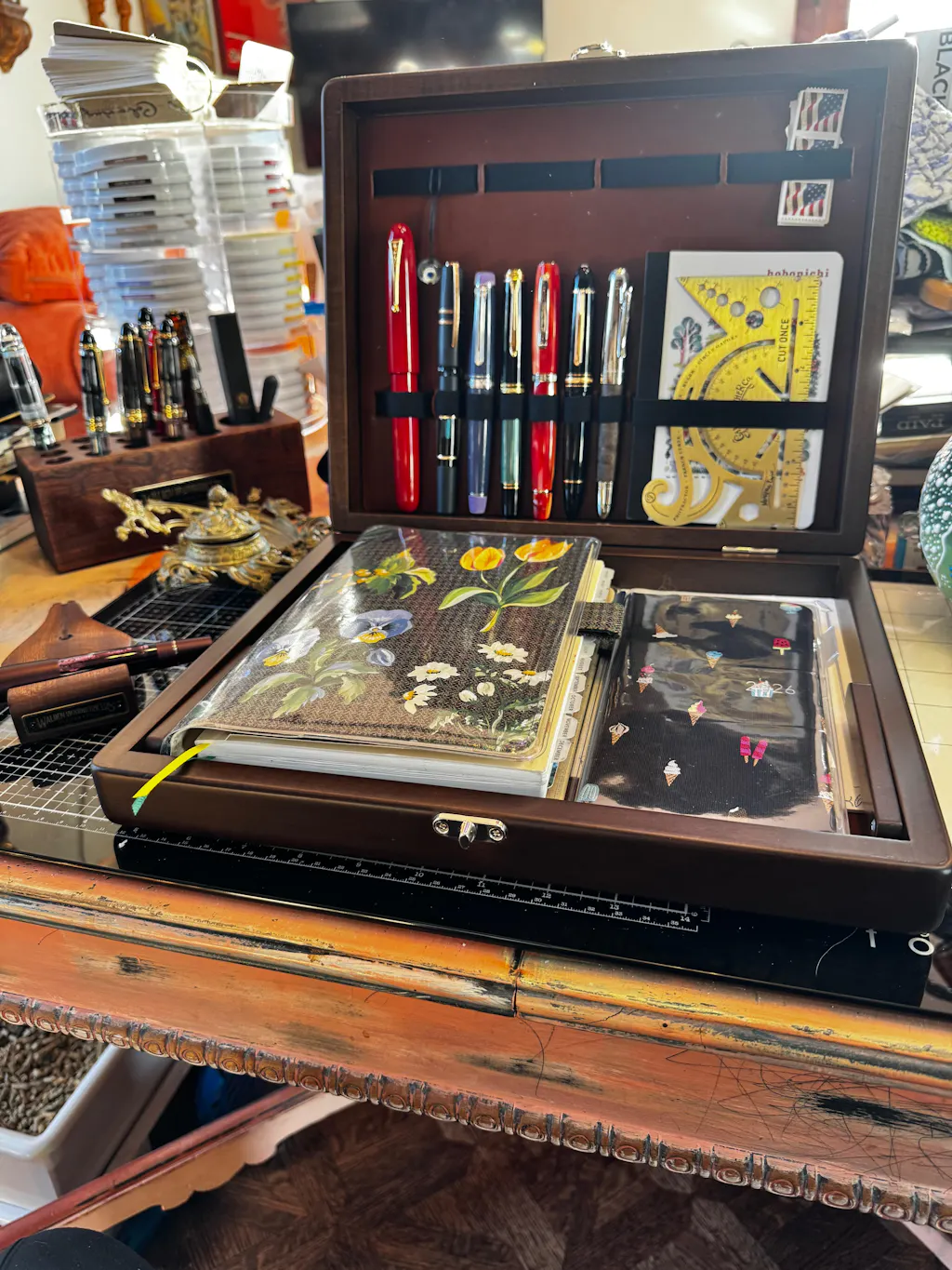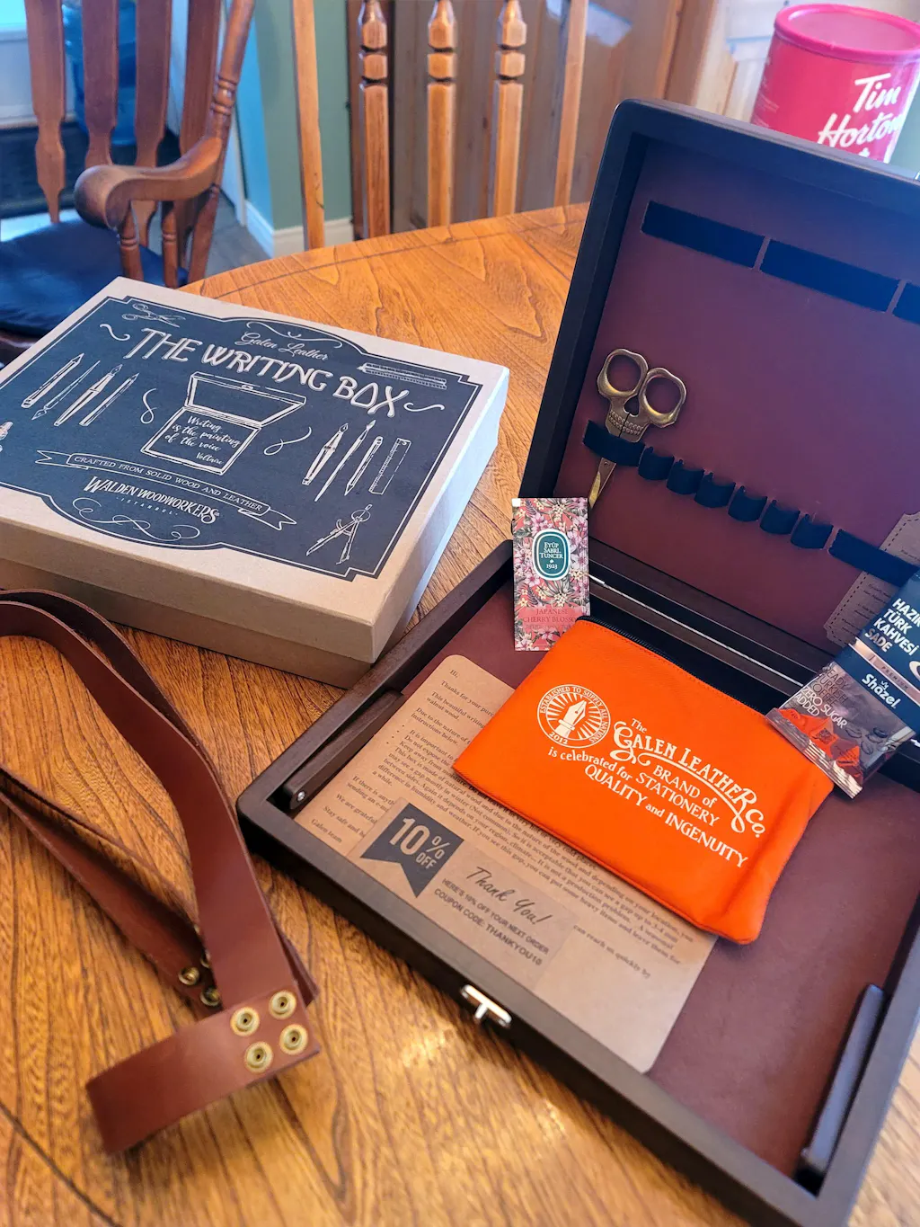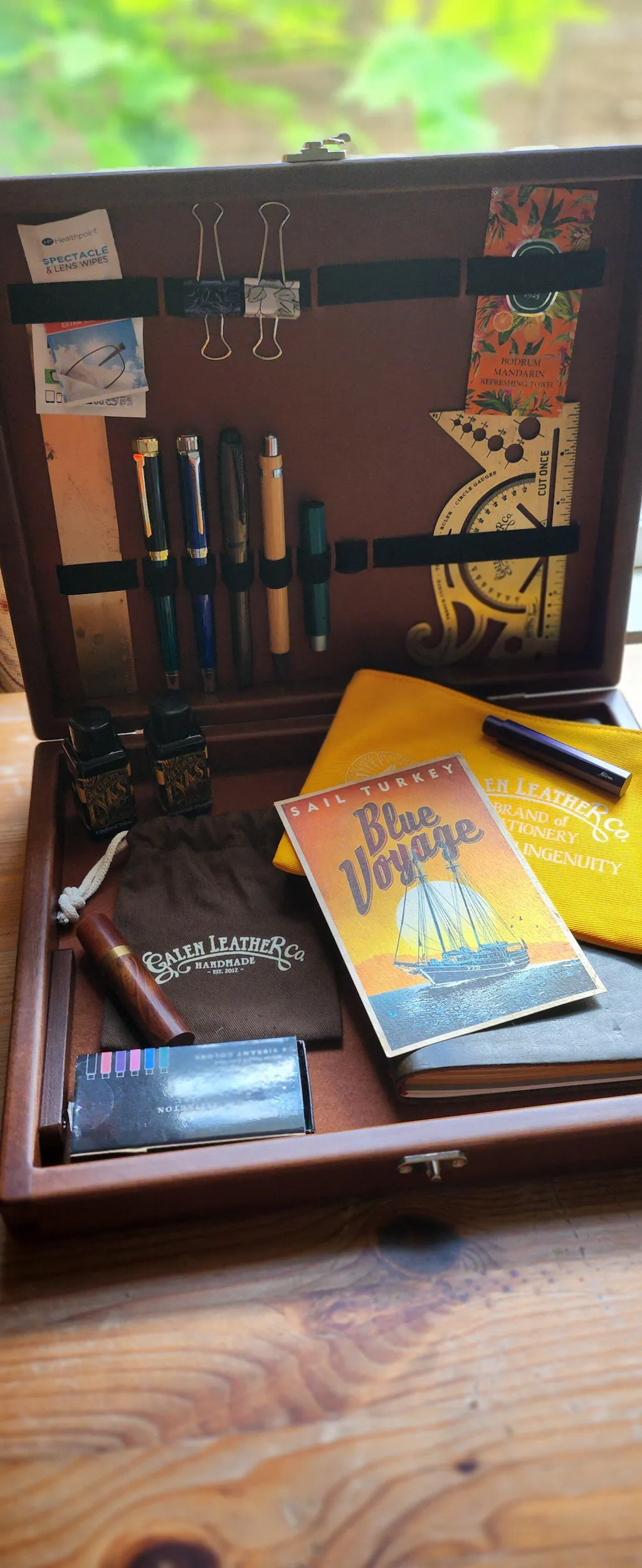Centuries ago, writing boxes enabled people to transport their stationery and writing instruments from place to place. These boxes were small and portable and served as a storage container as well as a writing surface. Now, the analog writer and avid creative can still enjoy this charming piece with Galen Leather’s Walden Woodworkers Co. writing box. We have collaborated with Walden Woodworkers Co. to build this beautiful and unique writing box.
